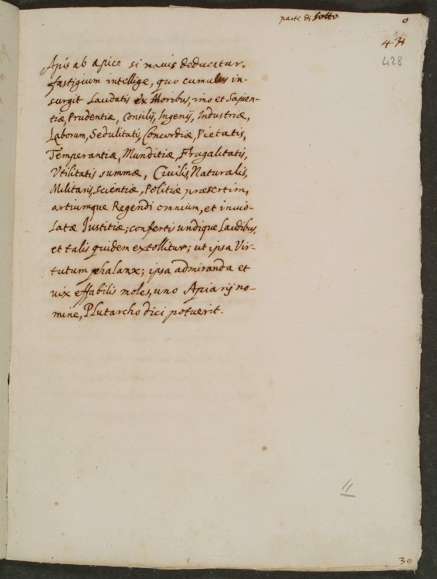 La lettera allo Stelluti è preziosa per le dichiarazioni concernenti la stesura dello scritto, che il fondatore dell’Accademia definisce uno “sbozzo” ancora lungi dall’essere ridotto in “buona forma”. Come Galileo, anche Della Porta è pregato di rivedere il testo, e per tale ragione Cesi ha “lasciato spazio la metà bianco”, così che l’anziano naturalista “aggiunga, minuisca, cassi, muti, come meglio… parerà”. Cesi, infine, confessa di avere redatto lo statuto nelle “mozzature” delle ore e di aver scelto uno stile ben lontano dall’imitazione degli “autori”, “havendo l’occhio solo alle cose e non alla lingua”.